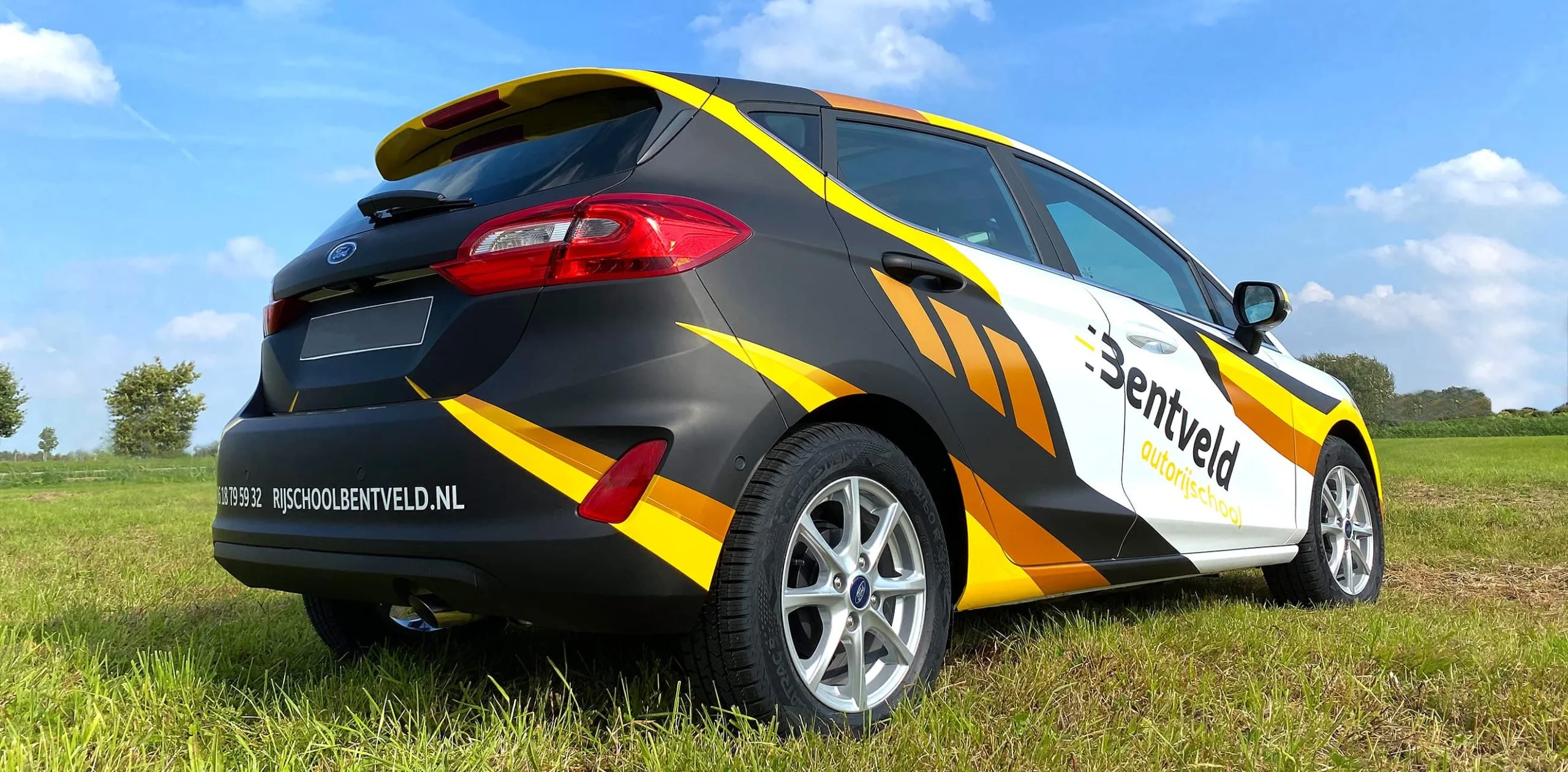 Autorijschool Bentveld wilde opvallen en zich duidelijk onderscheiden van andere rijscholen. Samen met Kay ontwikkelden we een opvallende merkidentiteit met frisse kleuren, een nieuw logo, visitekaartjes, een website en natuurlijk een in het oog springende lesauto. Het resultaat? Een rijschool die je meteen herkent én bijblijft.