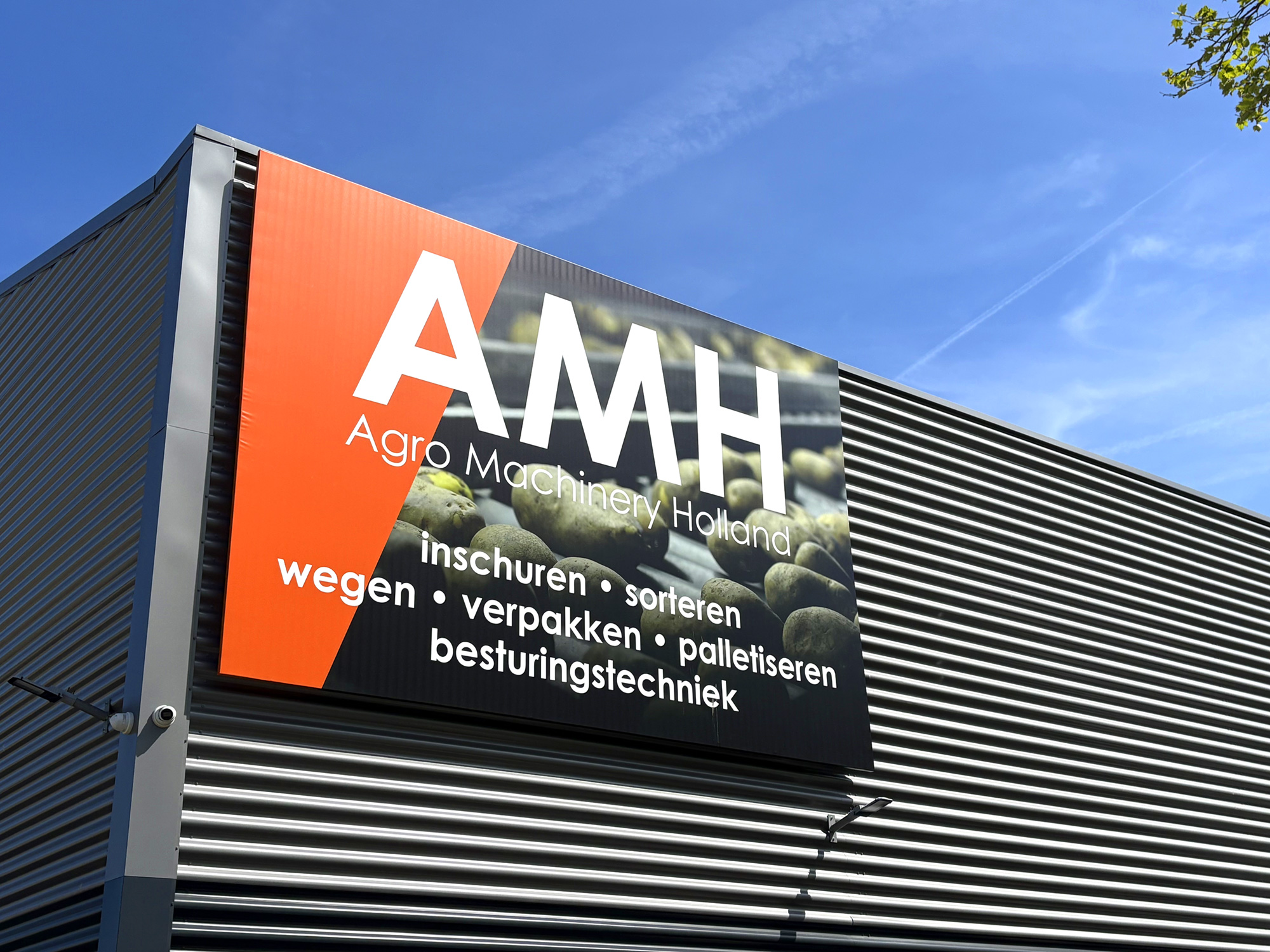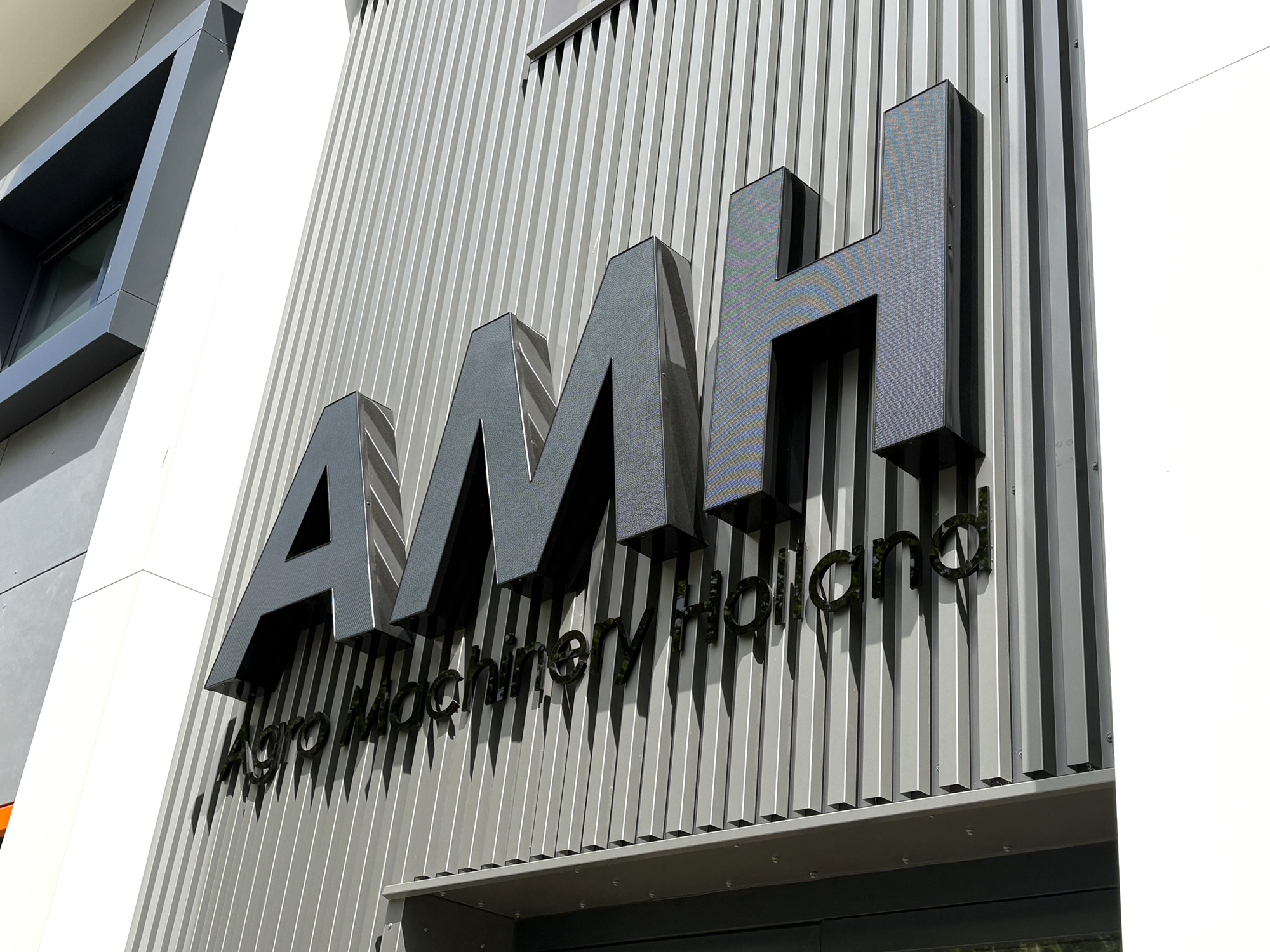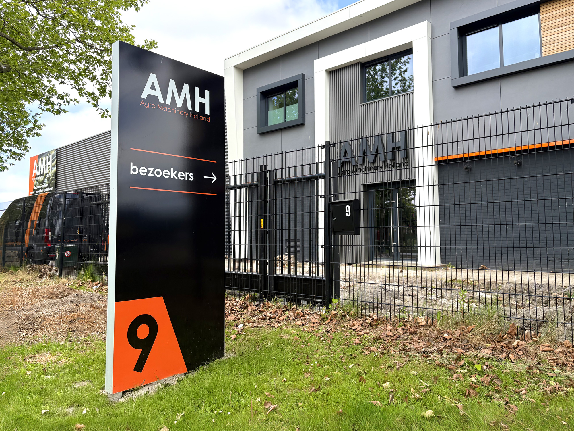 Voor Agro Machinery Holland realiseerden we een complete visuele aankleding van het pand. Van verlichte doosletters en een opvallend blind frame tot duidelijke bewegwijzering en een strak beletterd wagenpark. Alles klopt tot in de details en draagt bij aan één krachtige, herkenbare uitstraling.