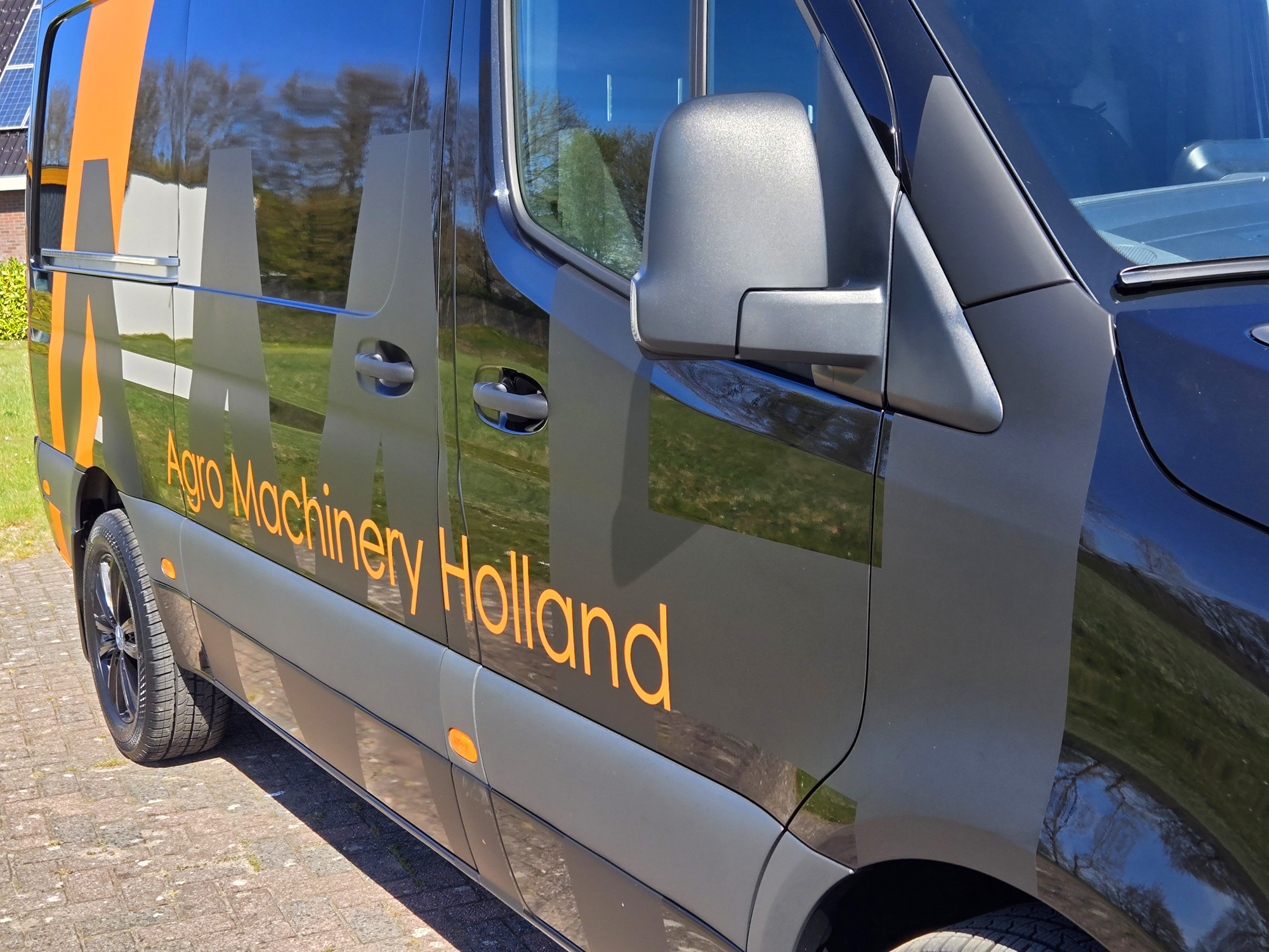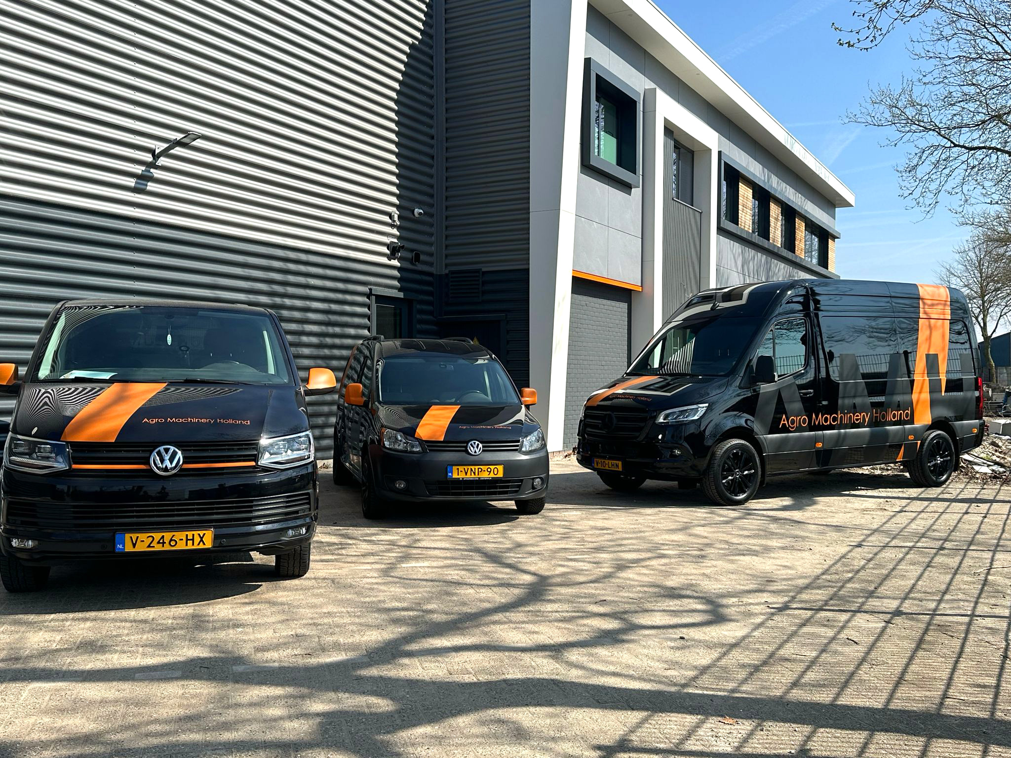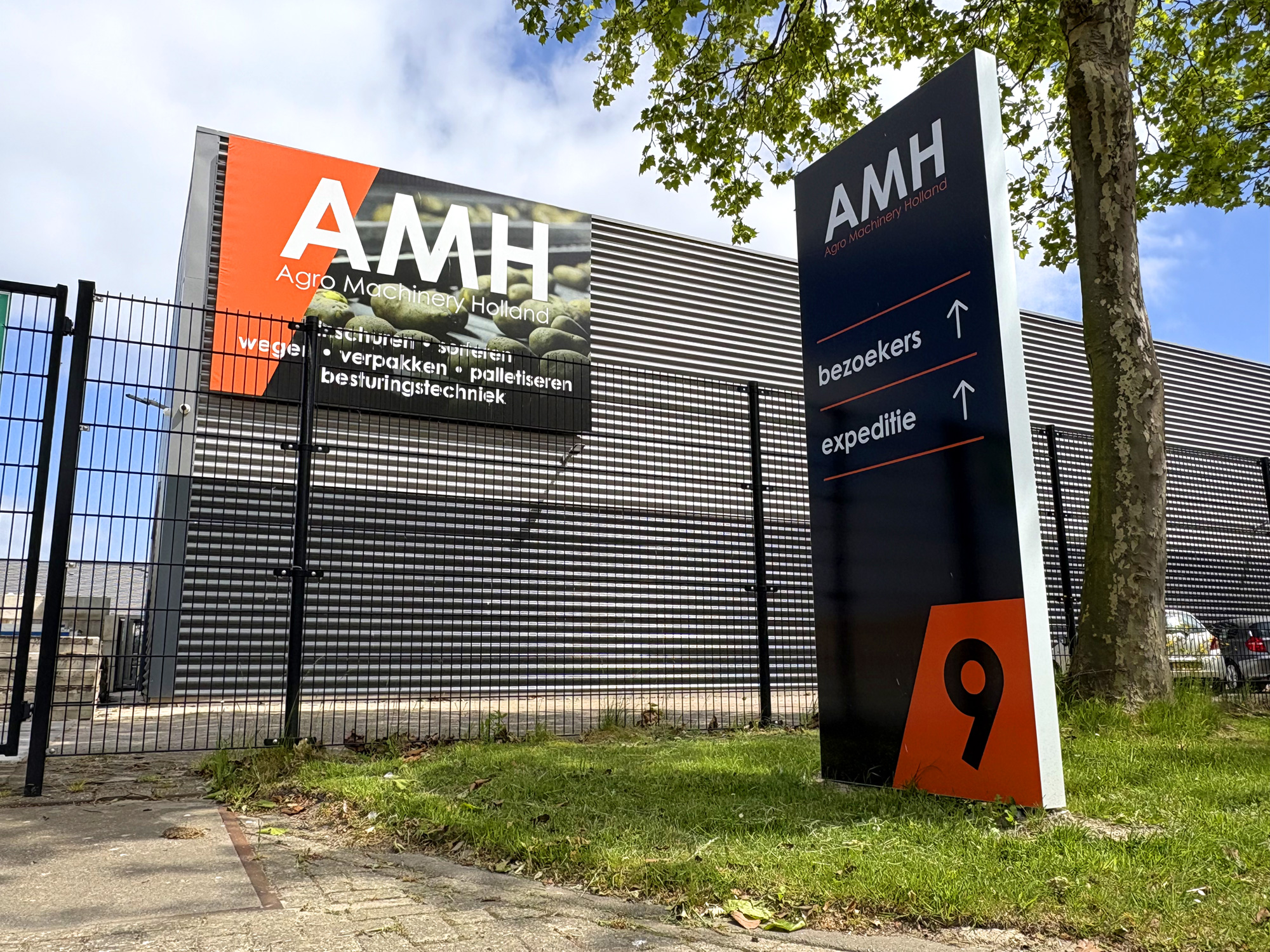 Voor Agro Machinery Holland realiseerden we een complete visuele aankleding van het pand. Van verlichte doosletters en een opvallend blind frame tot duidelijke bewegwijzering en een strak beletterd wagenpark. Alles klopt tot in de details en draagt bij aan één krachtige, herkenbare uitstraling.